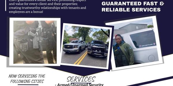 Founded in Nashville, Tennessee, Cobra Special Response Team has proven to be supporters of the Great State of Tennessee and highly recommended throughout the Mid-South. CSRT is no stranger to service as they’ve never yielded in providing jobs to young adults and law enforcement retirees, countlessly investing in the cities' communities. In review of their record of services, public reviews, and increased referral rates, CSRT consistently upholds their customer satisfaction guarantee; at all costs.